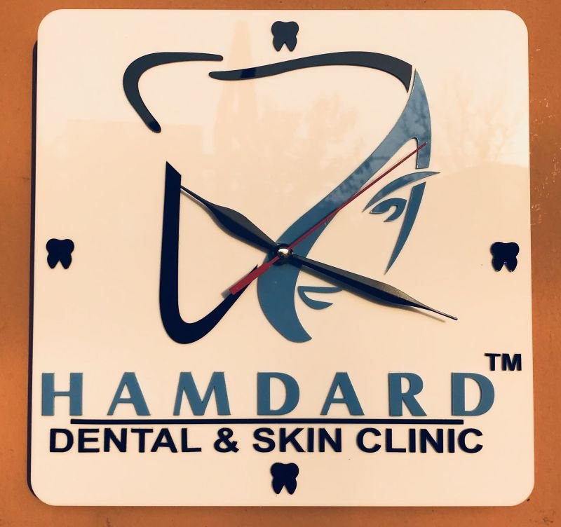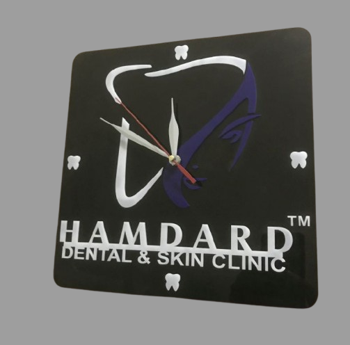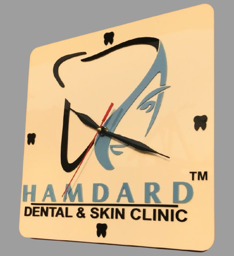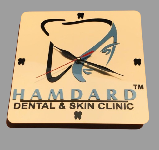 Crafted from high-quality acrylic with precision laser cutting, this square clock offers a clean and modern aesthetic. The prominent display of your clinic’s identity ensures visibility while maintaining a refined and professional look.
