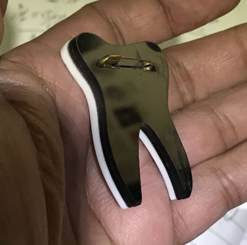 The contrasting color combination enhances depth and definition, making it ideal for dental clinics, awareness campaigns, university events, and exhibitions. Its larger size ensures it remains noticeable when worn on lab coats, uniforms, bags, or event lanyards.