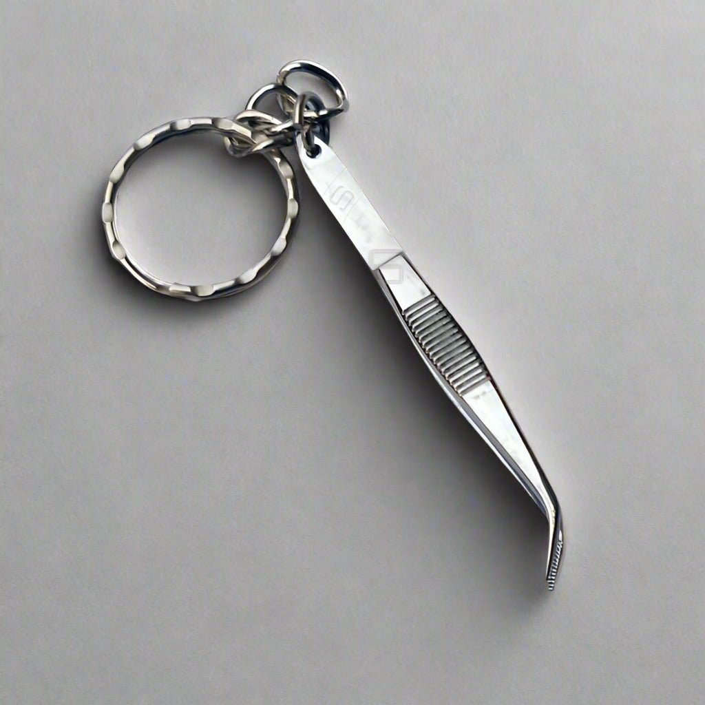 Subtle yet distinctive, this miniature tweezers keychain reflects attention to detail and professional identity in a practical, everyday accessory.