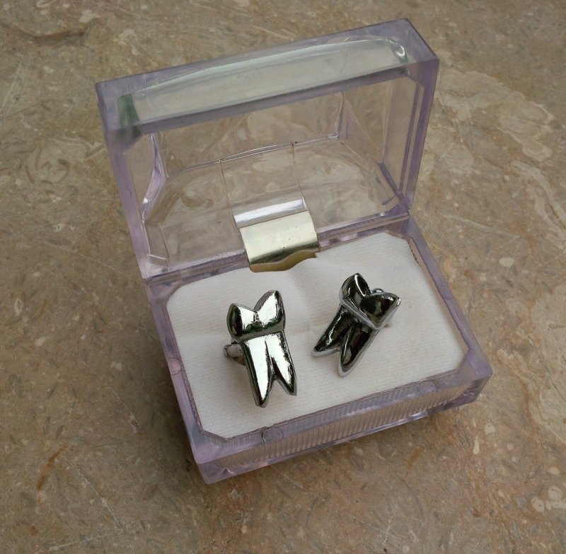 Tooth Shaped Metal Cufflinks – Dental Themed Cufflinks in Gold or Silver Finish